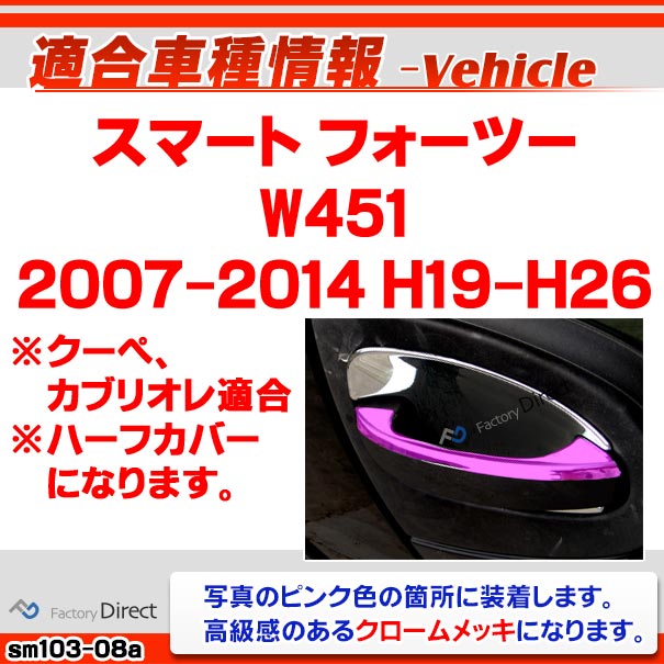 ri-sm103-08a ドアハンドルアウター用 Smart Fortwo スマート フォーツー W451 (2007-2014 H19-H26) ガーニッシュ カバー ( カスタム パーツ 車 カスタムパーツ メッキ ライト メッキパーツ トリム ドレスアップ 車用品 )